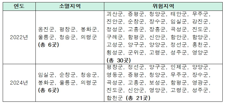 | ▲ 연도별 지역서점 소멸지역 ·소멸 위험지역 현황 |