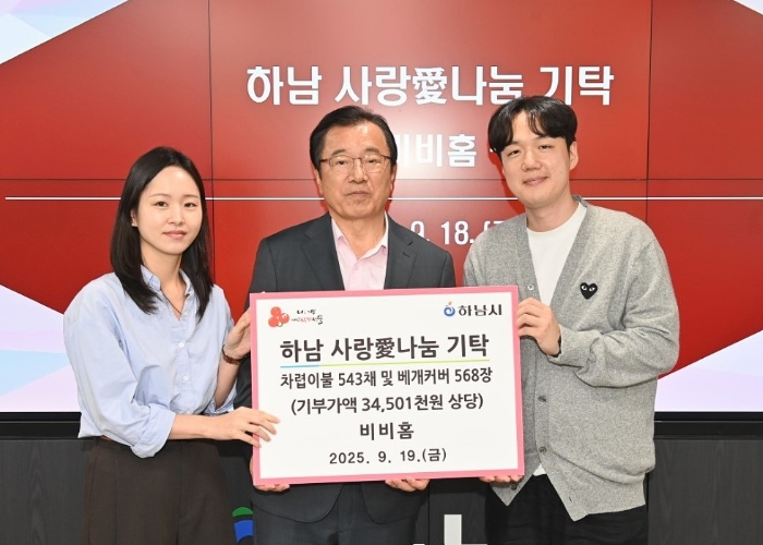 [메이저뉴스]지난 19일, 침구 제조·판매업체 비비홈은 하남시 관내 어려운 이웃들을 위해 차렵이불 543채, 베개커버 568장 (34,501천원 상당)을 기탁하며 기탁식을 가졌다.