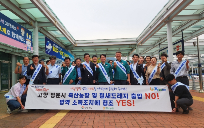 이번 캠페인은 지난달 아프리카돼지열병(경기 연천)과 고병원성 조류인플루엔자(경기 파주)가 발생한 상황에서 경남을 찾아오는 귀성객의 가축사육 농장 방문으로 인한 유입·확산을 예방하기 위함이다.