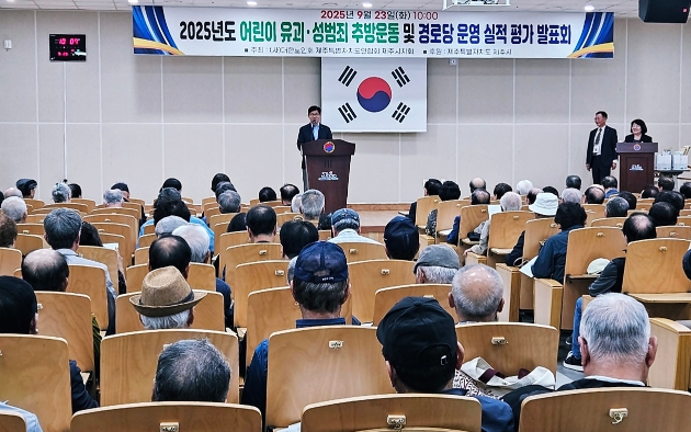 [메이저뉴스]현원돈 제주시 부시장은 9월 23일 제주시 노인복지회관에서 열린‘2025년 어린이 유괴·성범죄 추방운동 평가 및 경로당 운영 실적 평가·발표회’에 참석해 관계자들을 격려했다.