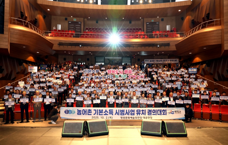 [메이저뉴스]영광군은 지난 10월 2일 오후 2시, 영광문화예술의전당 대공연장에서 '농어촌기본소득 시범사업 유치 결의대회'를 성황리에 개최했다.