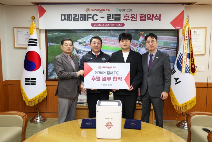 [메이저뉴스]재단법인 김해FC가 지역 내 혁신 기업과의 파트너십을 통해 구단 경쟁력 강화와 지역 상생이라는 두 마리 토끼 잡기에 나섰다. 김해FC는 20일, 가정용 음식물처리기 전문 브랜드인 ‘린클(Reencle)’과 공식 후원 협약을 체결했다고 밝혔다. 이번 협약은 김해FC의 중장기 발전 5대 전략 중 하나인 브랜드 협력 프로젝트의 핵심 사업, ‘아이언 유니티 네트워크(Iron Unity Network)’ 구축의 일환으로 성사됐다.