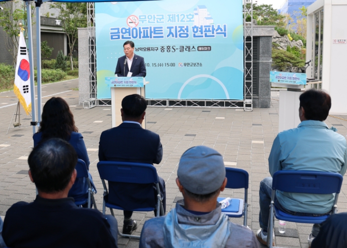[메이저뉴스]전남 무안군은 지난 15일 남악오룡지구 중흥 S-클래스 에듀파크 아파트에서 '제12호 금연아파트 지정 현판식'을 개최했다.