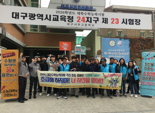 [메이저뉴스]대구 서구 청소년지도협의회(회장 황만태)는 지난 12일, 서부고등학교 정문에서 학생들의 수능 예비 소집일 시간에 맞춰 수험생 응원 및 선도·보호 합동 캠페인을 실시했다.