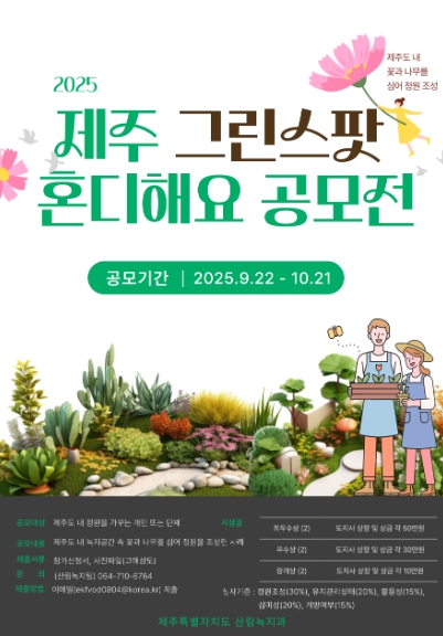 [메이저뉴스] 제주특별자치도는 도민들이 직접 가꾼 정원을 소개하고 공유하는 「제주 그린스팟 ᄒᆞᆫ디(함께)해요'사진 공모전을 개최한다.