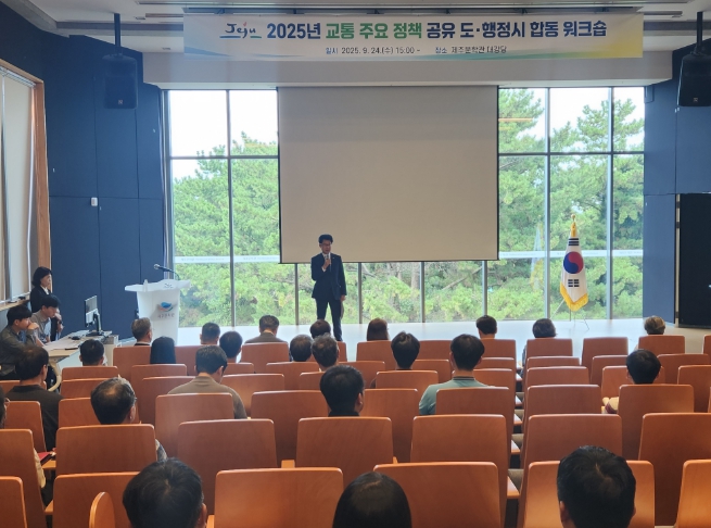 [메이저뉴스] 제주특별자치도가 24일 오후 3시 제주문학관 대강당에서 제주도와 행정시 합동으로 ‘2025년 교통 주요 정책 공유 워크숍’을 열고 교통정책 협력체계를 강화하는 자리를 마련했다.