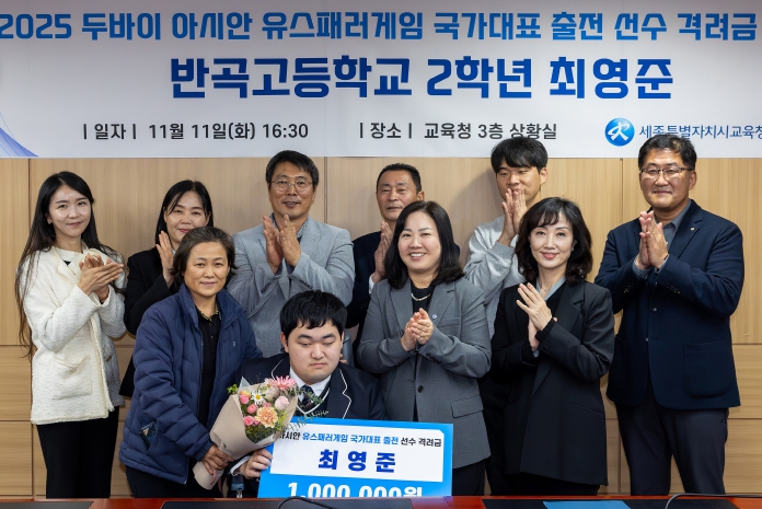 [메이저뉴스]세종특별자치시교육청은 반곡고등학교 2학년 최영준 학생이 12월 7일부터 14일까지 아랍에미리트 두바이에서 열리는 ‘두바이 2025 Asian Youth Para Games(아시안 유스패러게임)’ 뇌병변장애(F33) 원반던지기 종목에 국가대표로 출전함에 따라 함께 축하하고 격려했으며, 지원금 100만 원을 전달했다고 밝혔다.