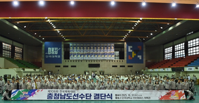 [메이저뉴스]충남도는 1일 단국대 천안캠퍼스 체육관에서 ‘제106회 전국체육대회 충남선수단 결단식’을 열고, 대회 출전에 대한 결의를 다졌다.