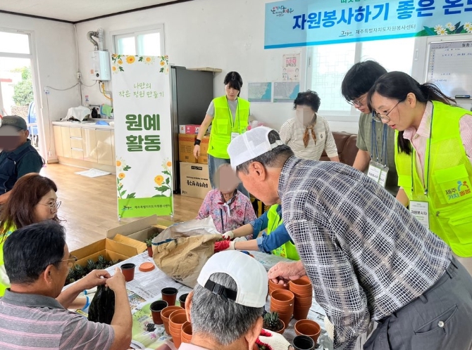 [메이저뉴스]제주특별자치도사회서비스원은 지난 9월 30일, 성산읍 신풍리경로당에서 어르신들과 함께하는 원예 자원봉사 활동을 실시했다.