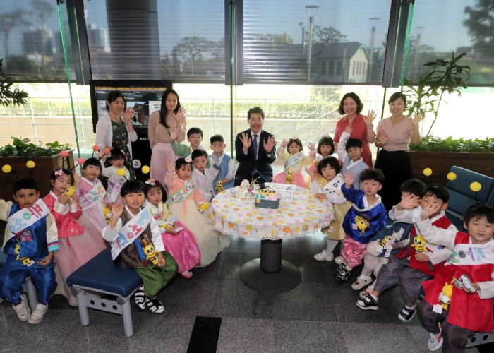 [메이저뉴스]부안군 내 어린이집 원아 13명이 10월 1일(수) 한복을 곱게 차려입고 군청을 방문해 따뜻한 추석 인사를 나눴다.