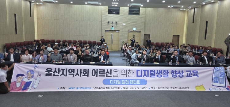 [메이저뉴스] 남구주민자치위원협의회(회장 김태현)와 울산청년회의소(회장 손문호)는 22일 남구청 6층 대강당에서 어르신들을 위한 ‘디지털 역량강화 교육’을 열어 큰 호응을 얻었다.
