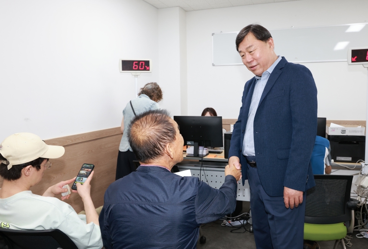 | ▲ 김종훈 동구청장은 22일 2차 민생회복 소비쿠폰 신청 및 지급 관련전하2동행정복지센터 등을 방문해 업무담당자 격려 및 민원인 상담 안내를 돕고 있다. |
