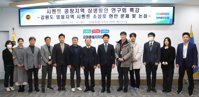 [메이저뉴스]강원특별자치도의회 의원연구단체인 '시멘트 공장지역 상생방안 연구회'는 12월 2일 오후 5시, 도의회 세미나실에서 ‘강원도 영동지역 시멘트 소성로 현안 문제 및 논점’을 주제로 특강을 개최했다.