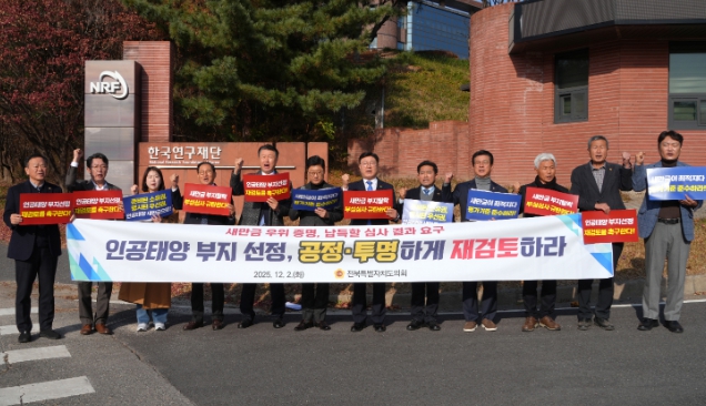 [메이저뉴스]전북특별자치도의회(이하 ‘도의회’)가 2일 과학기술정보통신부의 인공태양 연구시설 부지 선정과 관련, 한국연구재단 대전청사를 항의 방문했다.