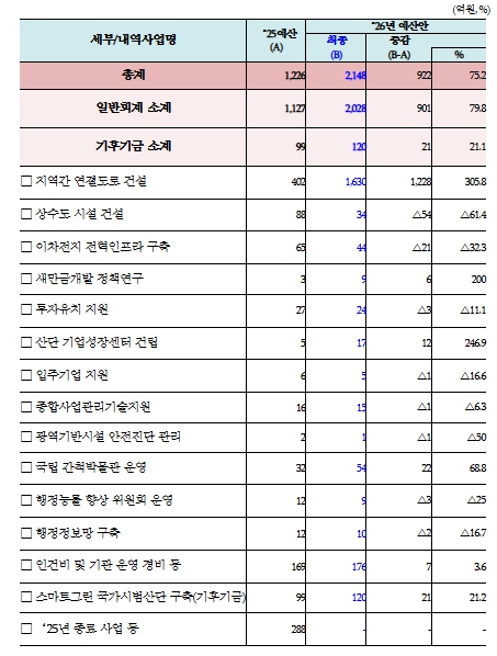 | ▲ 새만금개발청 2026년도 확정 예산 현황 |