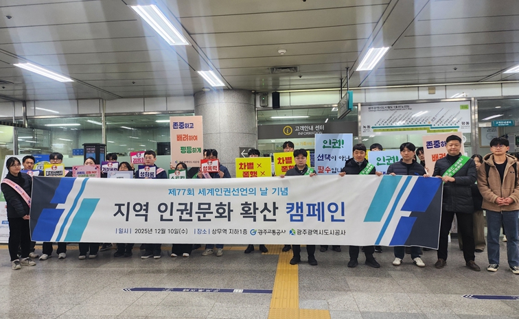 [메이저뉴스]광주도시공사(사장 김승남)는 지난 10일 서구 상무역에서 광주교통공사와 합동으로 인권문화 존중 캠페인을 펼쳤다고 밝혔다.