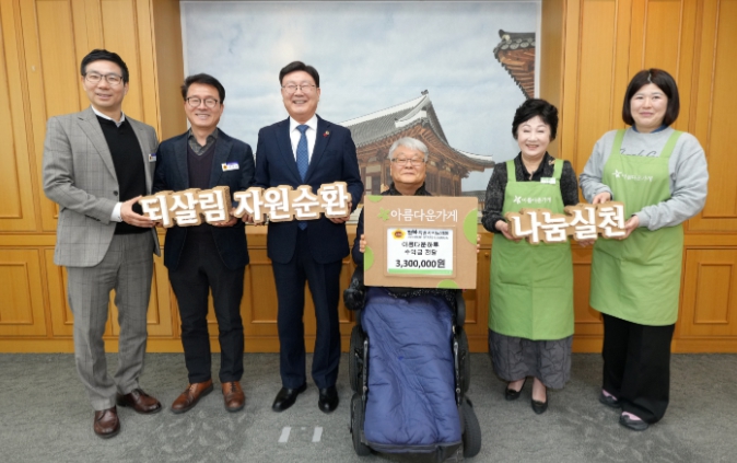 [메이저뉴스]전북특별자치도의회는 18일 의장실에서 하나예술창작센터의 장애인 예술 창작활동 지원과 노후 시설 보완 등에 활용해 달라며 기부물품 바자회 수익금 330만 원을 전달했다.