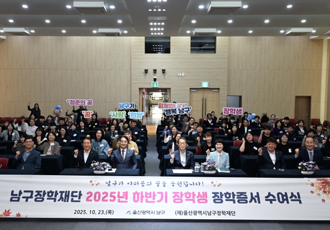 [메이저뉴스] 재단법인 울산광역시남구장학재단(이사장 서동욱 남구청장)은 23일 남구청 6층에서 ‘2025년 하반기 장학증서 수여식’을 개최했다.