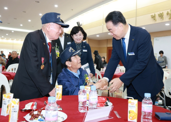 | ▲ ‘제7회 보훈가족 한마음 위안 행사’에서 보훈가족을 격려하는 구복규 화순군수 |