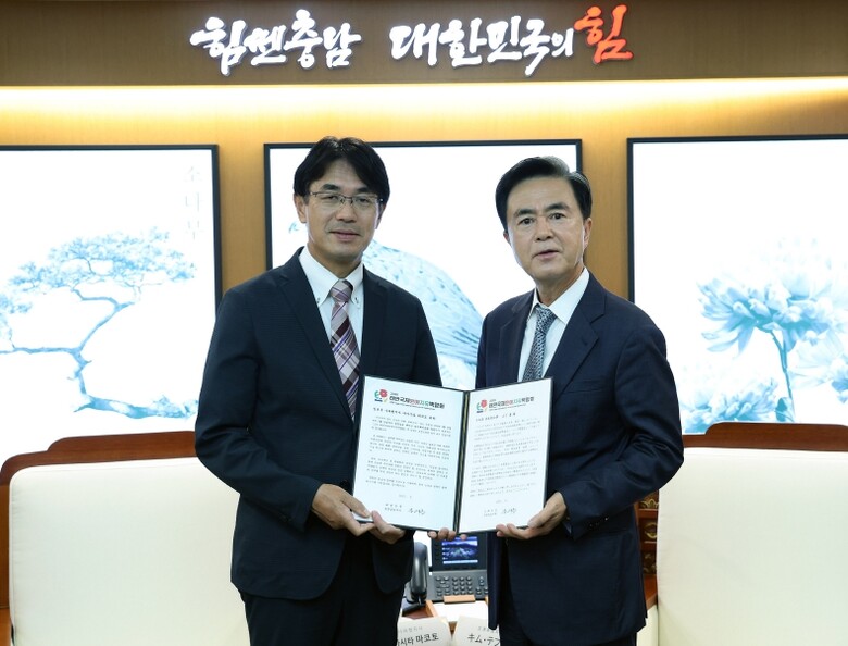 [메이저뉴스]김태흠 충남도지사는 25일 도청에서 야마시타 마코토(山下 真) 일본 나라현지사와 만나 양 지역 간 교류 협력 방안을 논의했다.
