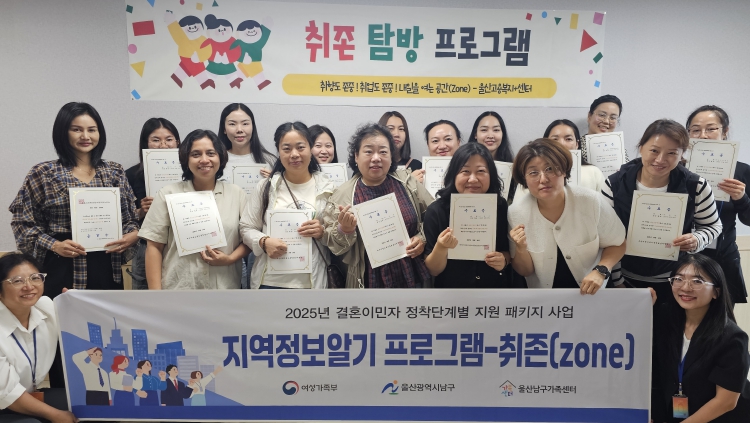 [메이저뉴스] 울산 남구 가족센터(센터장 이용희)는 울산고용복지플러스센터에서 ‘2025년 결혼이민자 취업지원을 위한 지역정보알기 프로그램‘취존(zone)’을 진행했다.