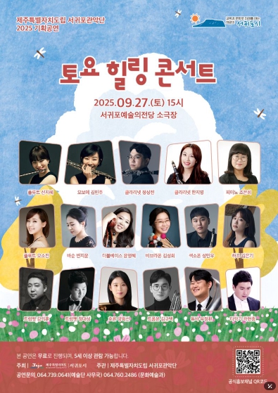 [메이저뉴스]서귀포시는 오는 9월 27일 15시 서귀포예술의전당 소극장에서 서귀포관악단의 기획공연 '토요힐링콘서트'를 진행한다.
