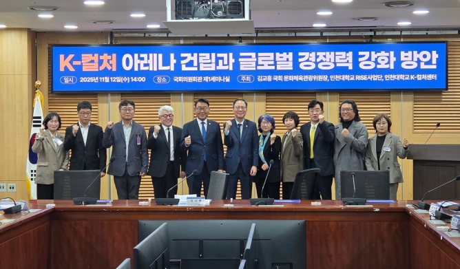 좌장은 손동혁 (사)한국문화정책연구소 이사장이 맡았으며, 김형석 작곡가(옥스퍼드대학교 방문교수)와 최영화 인천연구원 선임연구위원이 발제를 진행했다. 이어진 토론에는 김현목 문화체육관광부 대중문화산업과장, 홍진배 인천대학교 교수, 장웅조 홍익대학교 문화예술경영대학원장이 참여해 K-컬처 아레나의 추진 방향과 현실적 과제를 심도 있게 논의했다.