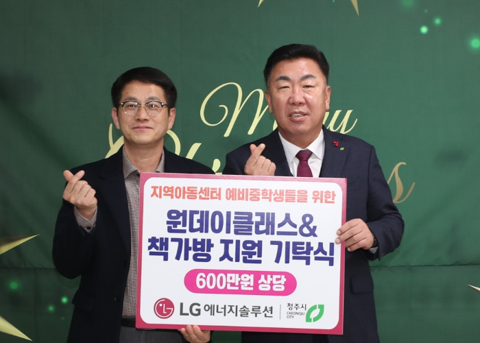 [메이저뉴스]청주시와 LG에너지솔루션은 16일 지역아동센터를 이용하는 아동 중 예비 중학생과 함께하는 원데이 클래스를 열고 책가방을 후원하는 등 따뜻한 나눔 행사를 개최했다.