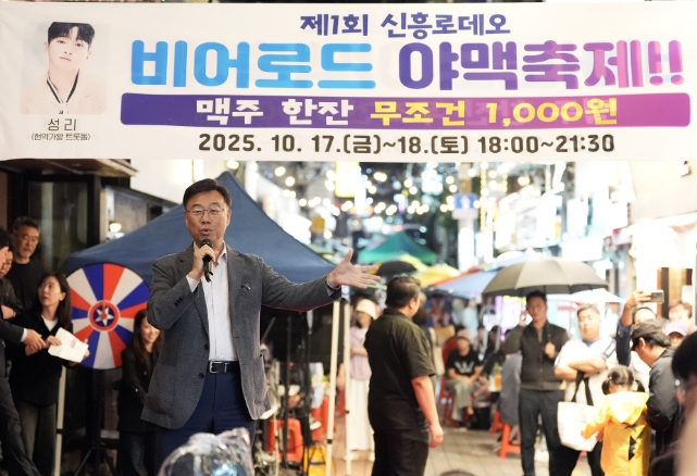 [메이저뉴스] 신상진 성남시장은 17일 저녁 신흥로데오거리 종합시장 먹자골목에서 열린 ‘제1회 신흥로데오 비어로드 야맥축제’ 개막식에 참석해 관계자들을 격려하고 시민들과 소통했다.