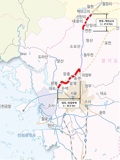 현재 경원선(연천~백마고지)과 교외선(대곡~의정부)은 디젤열차가 운행(경원선 예정)하고 있어 소음 및 매연 등 취약점을 고려할 경우, 친환경 수소열차 전환 수요가 높은 노선이다.