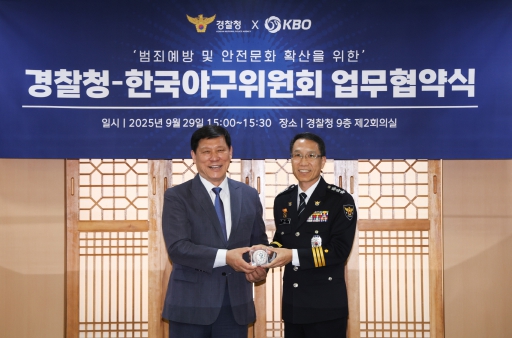 [메이저뉴스]KBO와 경찰청(청장 직무대행 유재성)은 9월 29일(월) 경찰청에서 업무 협약을 체결했다.
