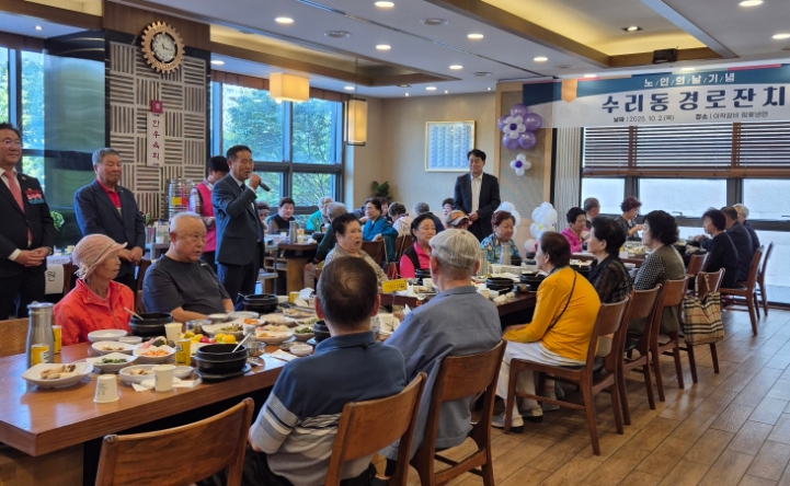 [메이저뉴스]군포시 수리동 주민자치회(회장 고진해)는 제29회 노인의 날을 맞아 지난 10월 2일 수리동 어르신들을 대상으로 경로잔치를 개최했다. 이번 행사는 하은호 군포시장, 이학영 국회부의장 등 여러 내빈과 수리동 직능단체장들이 어르신 100여 명과 뜻깊은 자리를 함께했다.
