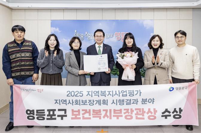 [메이저뉴스]영등포구가 2025년 보건복지부 지역복지사업 평가 ‘지역사회보장계획 시행결과’ 부문에서 우수기관으로 선정돼 보건복지부 장관상을 수상했다고 밝혔다.