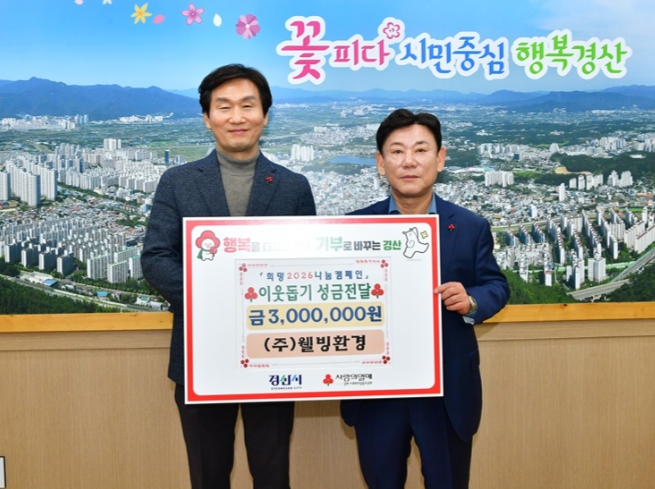 [메이저뉴스]경산시는 ㈜웰빙환경(대표이사 박상희)이 12월 19일 이웃돕기 성금 및 인재 육성을 위한 장학금 총 500만 원을 기탁했다고 밝혔다.