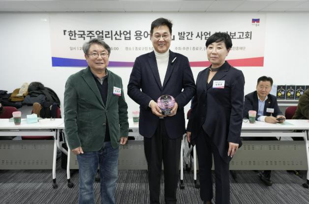 | ▲ 한국주얼리산업 용어사전발간 성과보고회(2025. 12.)에서 기념촬영하는 정문헌 구청장(가운데) |