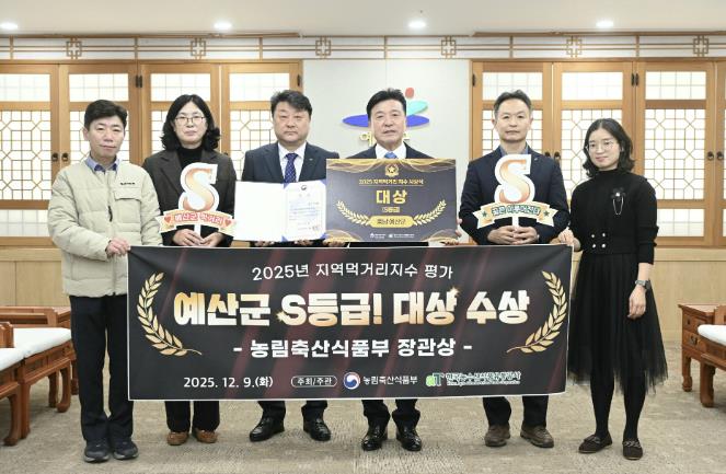 [메이저뉴스]예산군은 농림축산식품부가 주최하고 한국농수산식품유통공사(aT)가 주관한 2025년 지역먹거리지수 평가에서 전년 대비 두 단계 상승한 최고 등급 S등급을 달성하고 대상을 수상하는 성과를 거뒀다고 밝혔다.