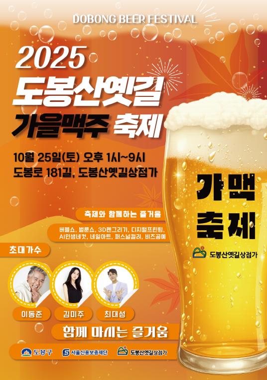 [메이저뉴스]서울 도봉구가 오는 10월 25일 도봉산옛길 상점가(도봉로 181길 일대)에서 '2025 도봉산옛길 가을맥주축제‘를 개최한다.