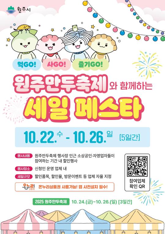 [메이저뉴스]원주시는 지역 대표 축제인 원주만두축제와 연계해 구도심 상권을 활성화하기 위해 오는 22일부터 26일까지 5일간 ‘원주만두축제와 함께하는 세일 페스타’를 개최한다.