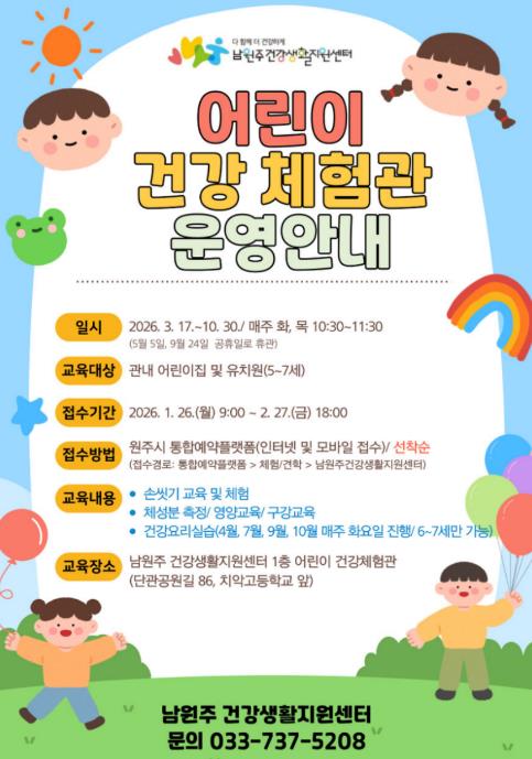 [메이저뉴스]남원주건강생활지원센터는 손 씻기, 영양 등을 주제로 미취학 아동들에게 건강 교육을 제공하는 ‘어린이 건강체험관’을 운영하고 있다.
