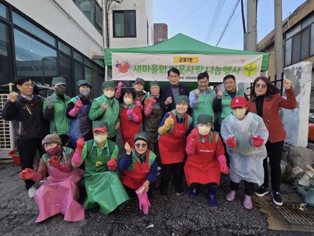 [메이저뉴스]지난 5일 군포시 군포1동새마을지도자협의회와 군포1동새마을부녀회는 군포1동행정복지센터 앞마당에서 ‘2025년 사랑담은 김장김치 담그기’행사를 열고, 지역 내 어려운 이웃을 위한 따뜻한 나눔을 실천했다.
