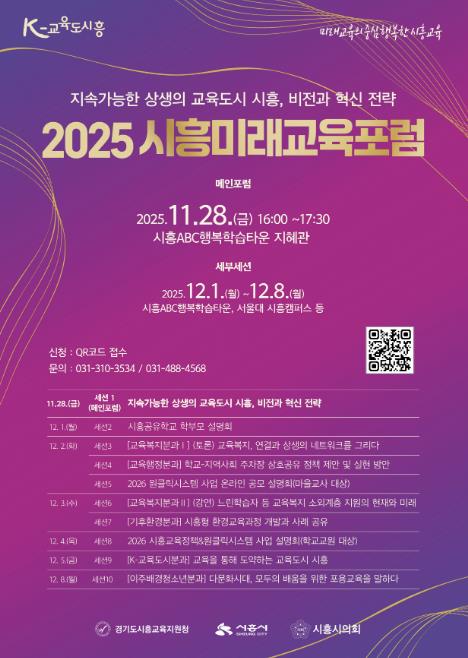 [메이저뉴스]시흥시는 시흥교육지원청, 시흥시의회와 함께 오는 11월 28일부터 12월 8일까지 ‘2025 시흥미래교육포럼’을 진행한다.
