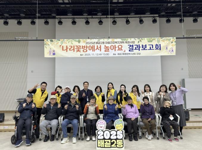 [메이저뉴스]배곧2동 지역사회보장협의체는 지난 11월 12일 ‘나리꽃방에서 놀아요’ 결과보고회를 개최하며 1년간의 활동을 마무리했다. 이번 행사는 사업에 참여한 어르신과 협의체 위원들이 함께 모여 그동안의 성과를 공유하고 서로에게 감사의 마음을 전하는 자리로 마련됐다.