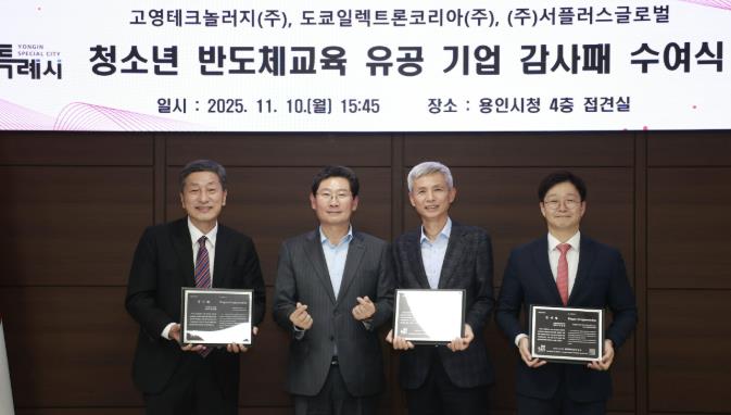 | ▲ 용인특례시는 10일 청소년 반도체교육에 앞장선 지역 기업 3곳에 감사패를 수여했다 |