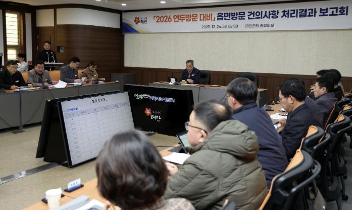 군은 지난 26일 군청 중회의실에서 가세로 군수를 비롯해 부서장, 읍면장 등 40여 명이 참석한 가운데 ‘읍면방문 건의사항 처리결과 보고회’를 개최했다고 밝혔다.