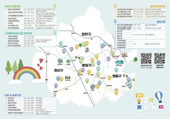 수원시 관계자는 “이주민 편의 지도는 정보 접근에 어려움을 겪는 이주민들에게 실질적인 도움을 줄 수 있는 자료”라며 “이주민의 정착과 생활에 필요한 다양한 정보를 지속해서 발굴하고 제공하겠다”고 밝혔다.