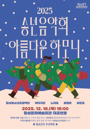 [메이저뉴스]횡성문화관광재단은 오는 18일 19시, 횡성문화예술회관 대공연장에서 한 해를 마무리하는 따뜻한 문화행사로 ‘2025년 송년음악회 – 아름다운 하모니’를 개최한다.