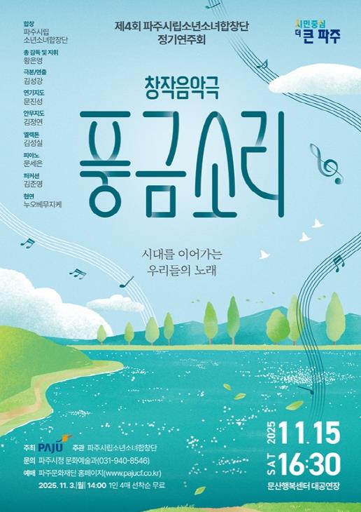 [메이저뉴스]파주시는 오는 15일 16시 30분, 문산행복센터 대공연장에서 파주시립소년소녀합창단 제4회 정기연주회 ‘풍금소리’를 개최한다고 밝혔다.