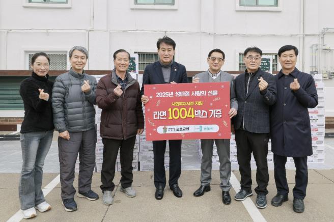 [메이저뉴스]군포시는 지난 10일 군포교회에서 성탄절 및 연말을 맞아 라면 1,004박스를 기탁했다고 밝혔다.