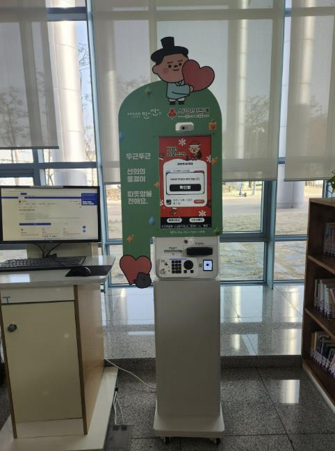 | ▲ 상록구청 1층 로비에 설치된 이동식 기부 키오스크 사진 |