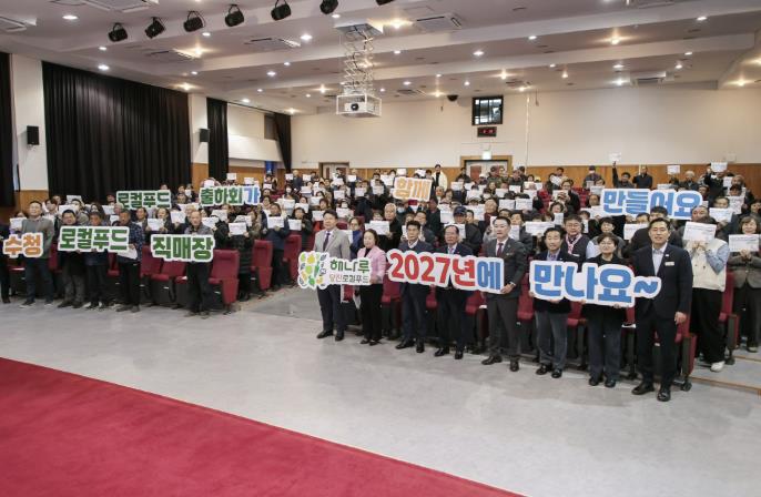이날 출하 다짐대회에서는 농가들이 ‘수청 로컬푸드 직매장 2027년에 만나요, 로컬푸드 출하회가 함께 만들어요’라는 문구가 적힌 피켓을 들고 참여해 2027년 상반기 개장을 앞둔 수청동 직매장을 향한 기대와 의지를 함께 공유했다.
